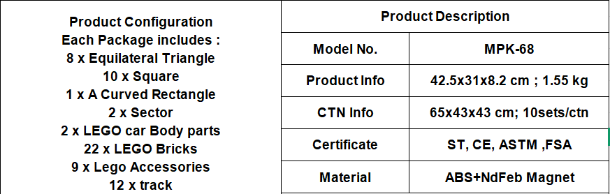 Magplayer classic magnetic tiles are made of high-quality, environmentally friendly ABS material and non-toxic magnetic material, and are polished to ensure that children can operate safely and comfortably. The parts are securely embedded with magnets using precision ultrasonic technology, ensuring long-term durability and safety.
