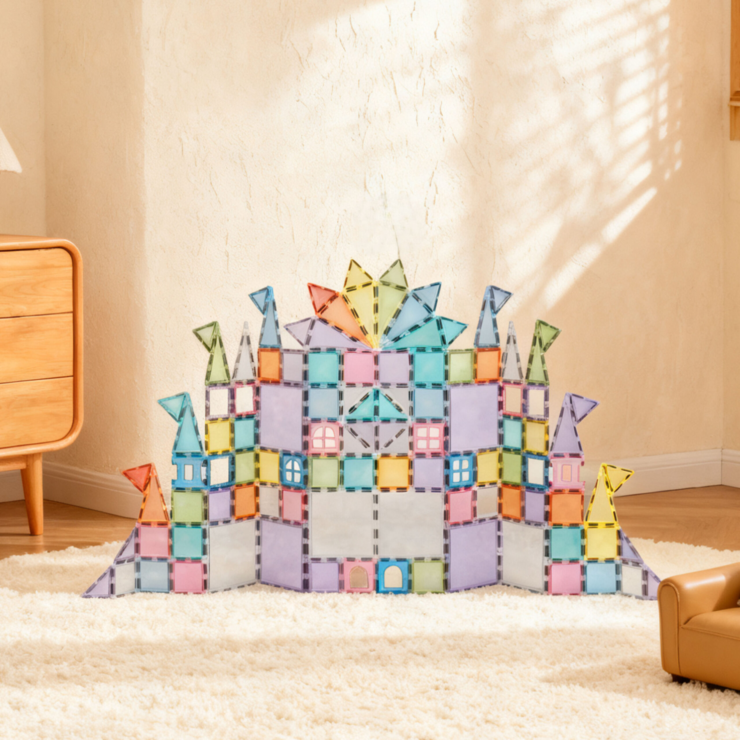 Discover endless creative possibilities with the Magplayer 120 Piece SKY Tiles Magnetic Sheet Set! This complete set includes magnetic plates of various shapes, as well as semi-circles and half-sliced blocks, with unique magnetic joints – tighter and safer to build. This set is the perfect extension to any magnetic puzzle collection, bringing STEAM learning to life through engaging hands-on games.