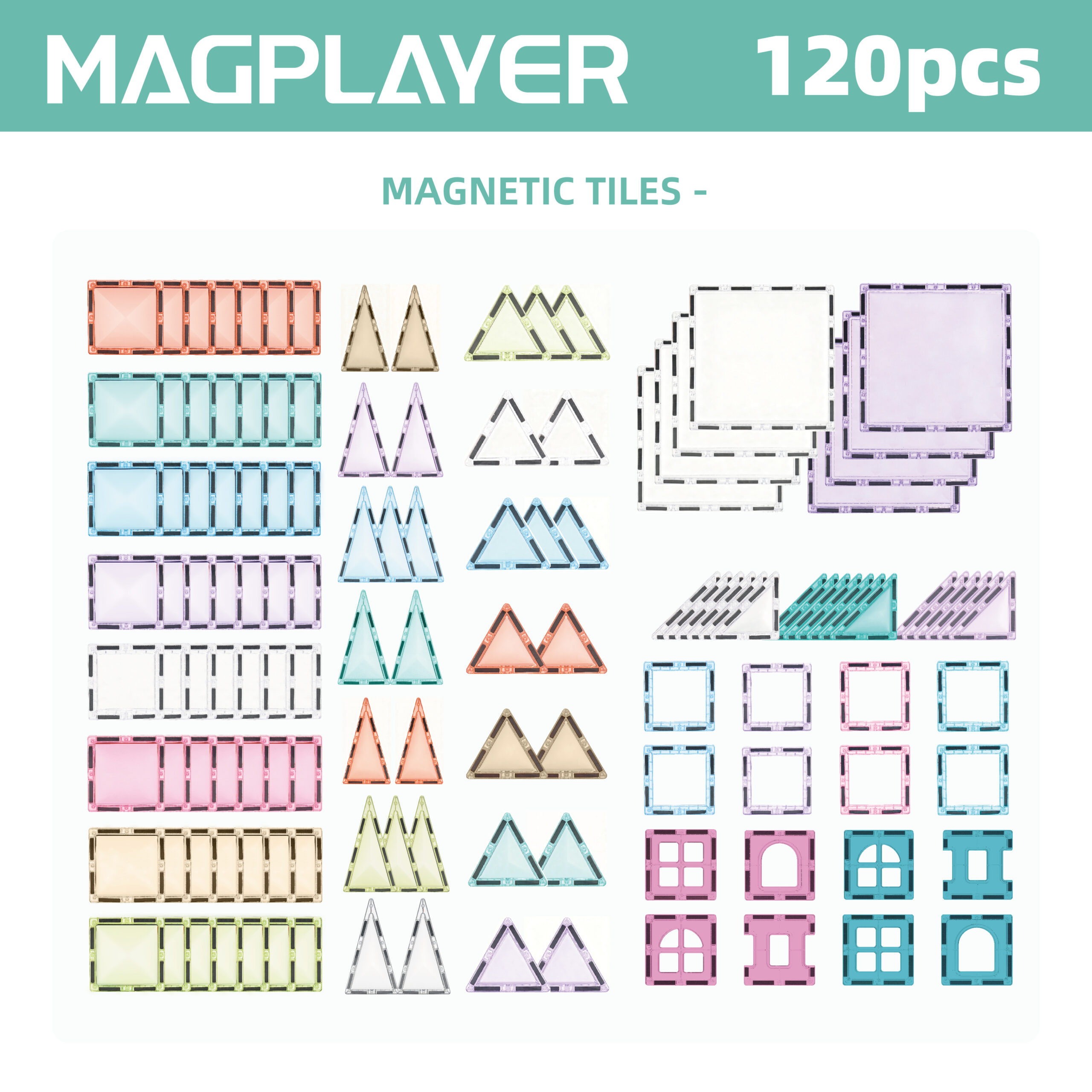 Magplayer 120 Piece Magnetic SKY Tiles Plates