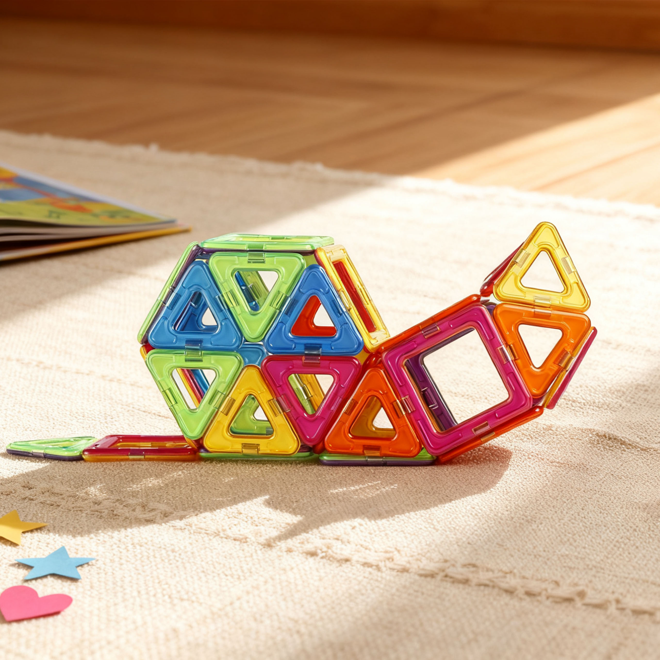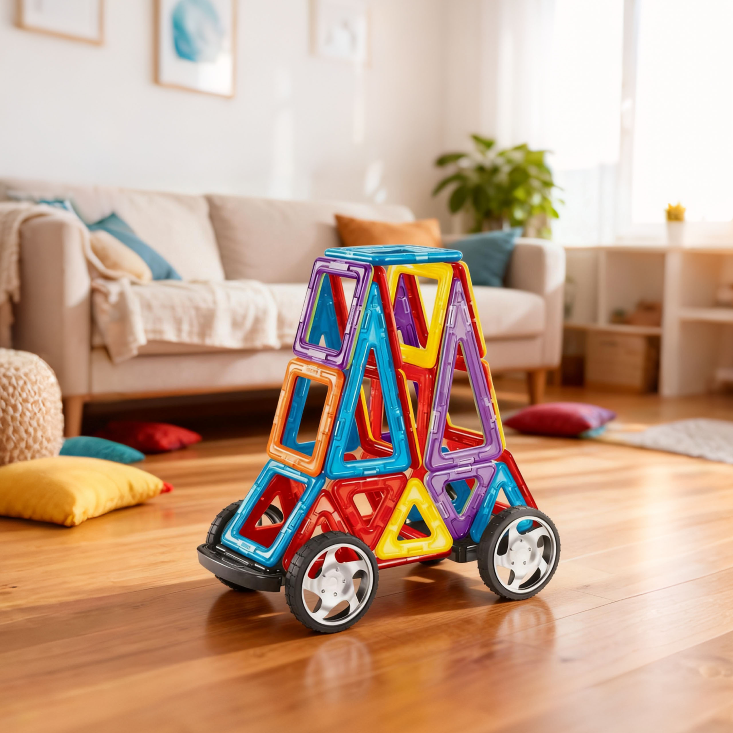 Discover endless creative possibilities with the Magplayer 40-piece classic tile set! This complete set includes tiles in various shapes, including wheel accessories, squares, and various triangles, and is equipped with a unique pull-out play feature. This set is the perfect extension of any magnetic puzzle collection, bringing STEAM learning into life through an engaging hands-on game.