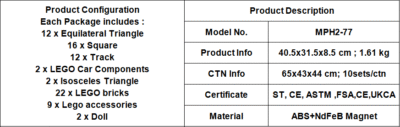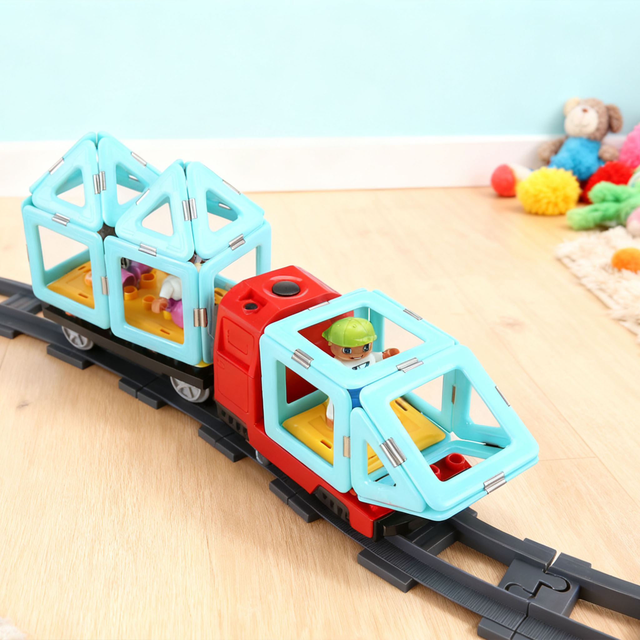 Use the Magplayer 77 piece Macaron Tiles set to explore endless creative possibilities! This complete set includes tiles of various shapes, including carboard accessories, squares, and various triangles, and is equipped with a wheel track. This set is a perfect extension of any magnetic puzzle collection, bringing STEAM learning into life through an engaging hands-on game.