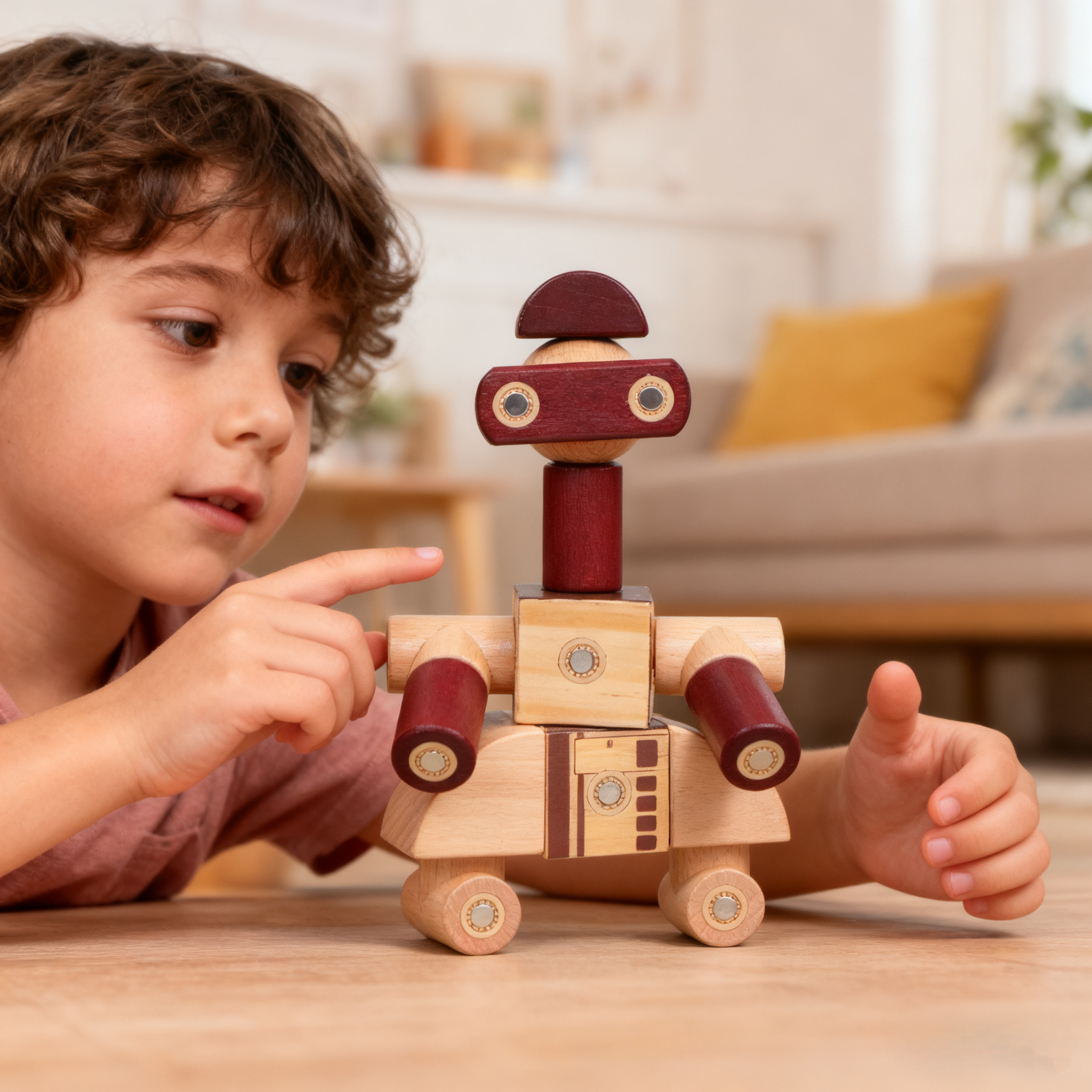 Crafted from premium, eco-friendly wood and non-toxic magnetic materials, each Magplayer wooden magnetic block is smoothly polished to ensure safe, comfortable handling for children. The parts are securely embedded with magnets using precise ultrasonic technology — ensuring long-lasting durability and safety.