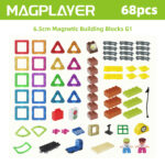 Use the Magplayer 68 piece classic tile set to explore endless creative possibilities! This complete set includes tiles of various shapes, including carboard accessories, squares, and various triangles, and is equipped with a wheel track. This set is a perfect extension of any magnetic puzzle collection, bringing STEAM learning into life through an engaging hands-on game.