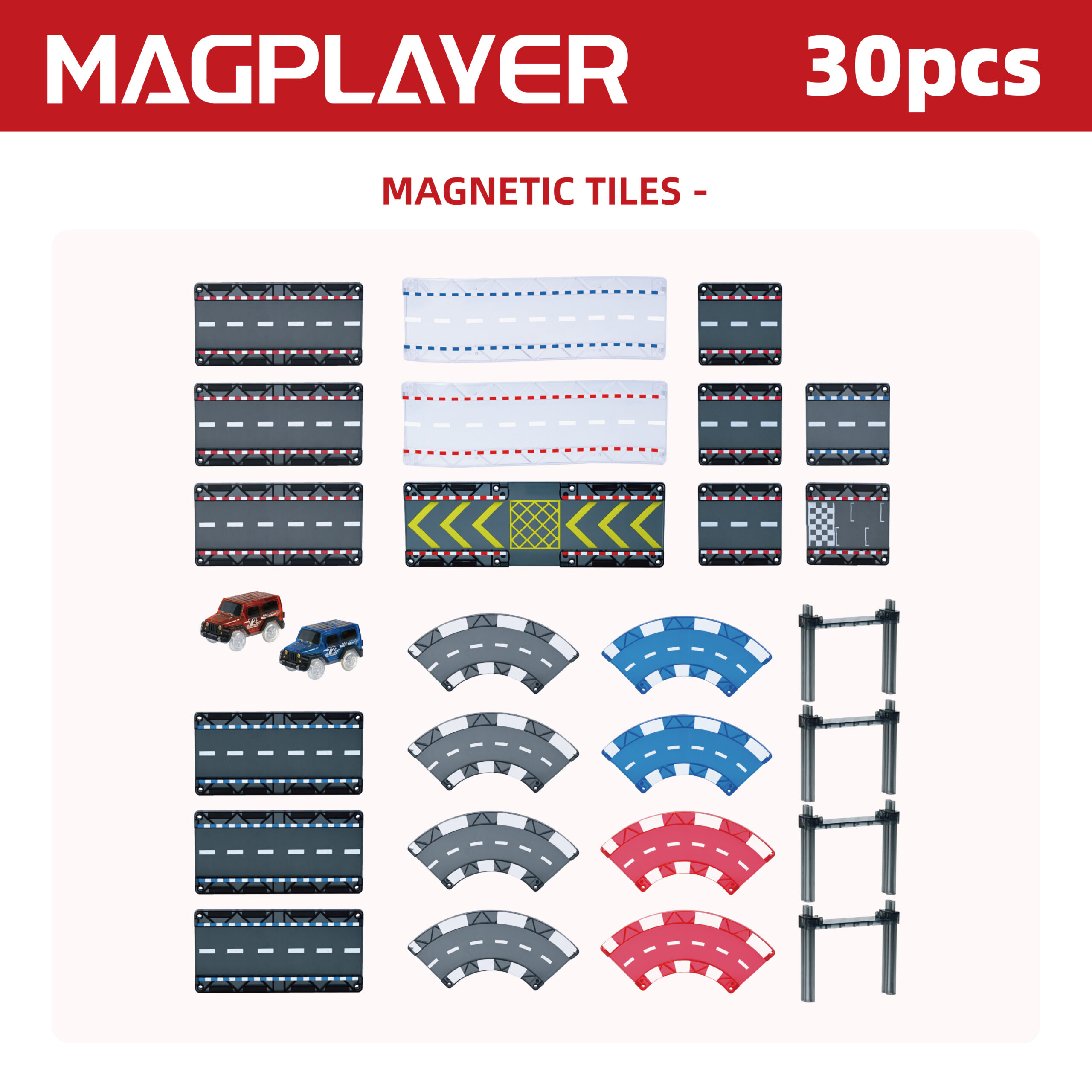 Discover endless creative possibilities with the Magplayer 30 Piece Magnetic Race Tracks! This complete set includes orbital magnets of various shapes, including straight paths of all lengths, as well as electric cars and road signs with unique magnetic contact points – built more tightly and safely. This set is the perfect expansion to any magnetic puzzle collection, bringing STEAM learning to life through engaging hands-on games.