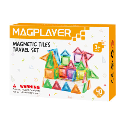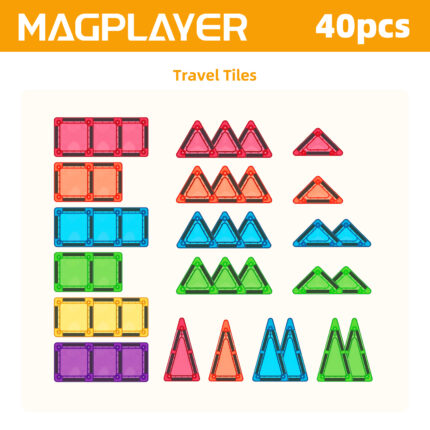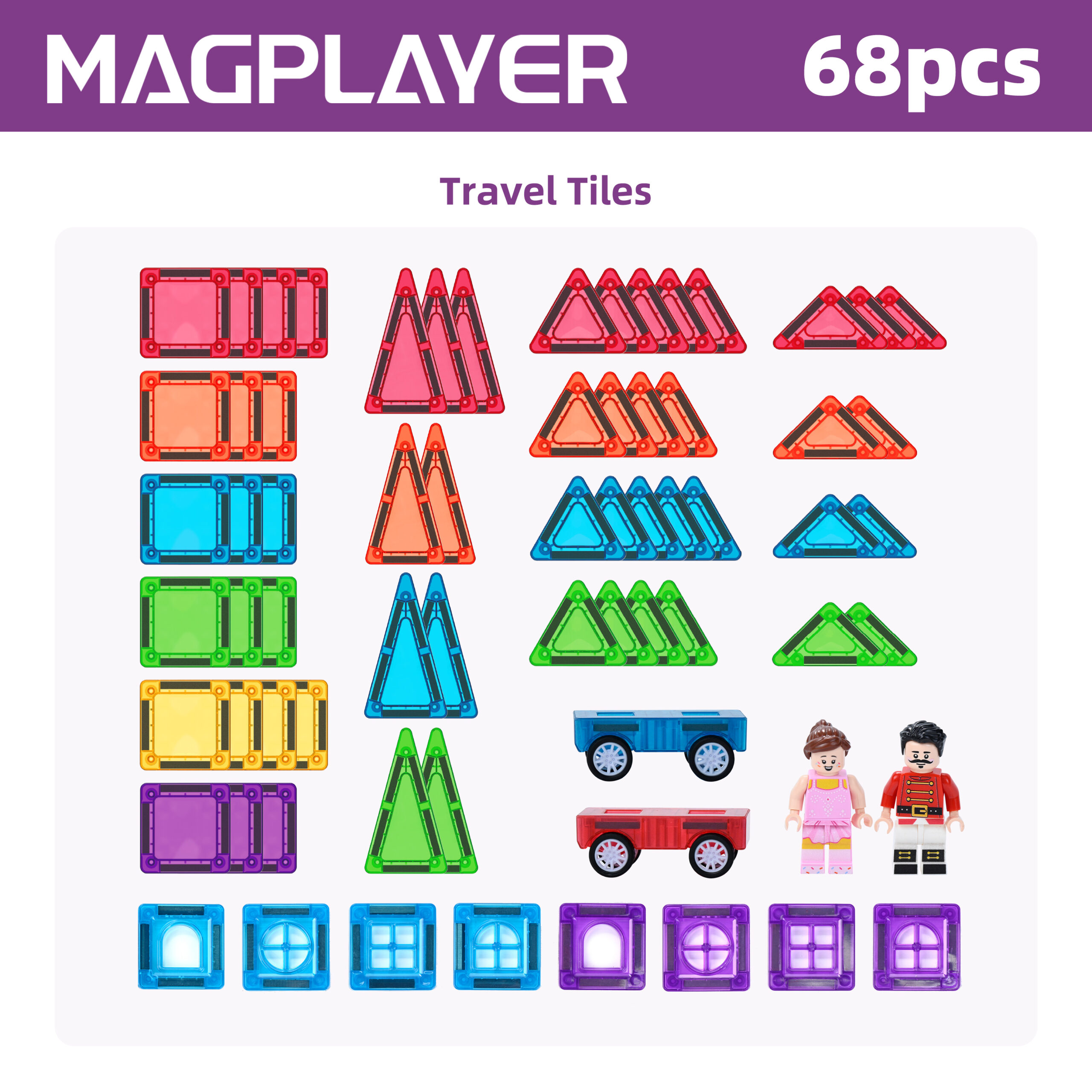 Discover endless creative possibilities with the Magplayer 68-piece travel tile set! This complete set includes mini magnetic tiles in various colors, a magnetic box that can be used to build with the magnetic tiles, and various shapes in unique sizes. This is an ideal expansion for any tile collection, bringing STEAM learning into life through engaging hands-on games.