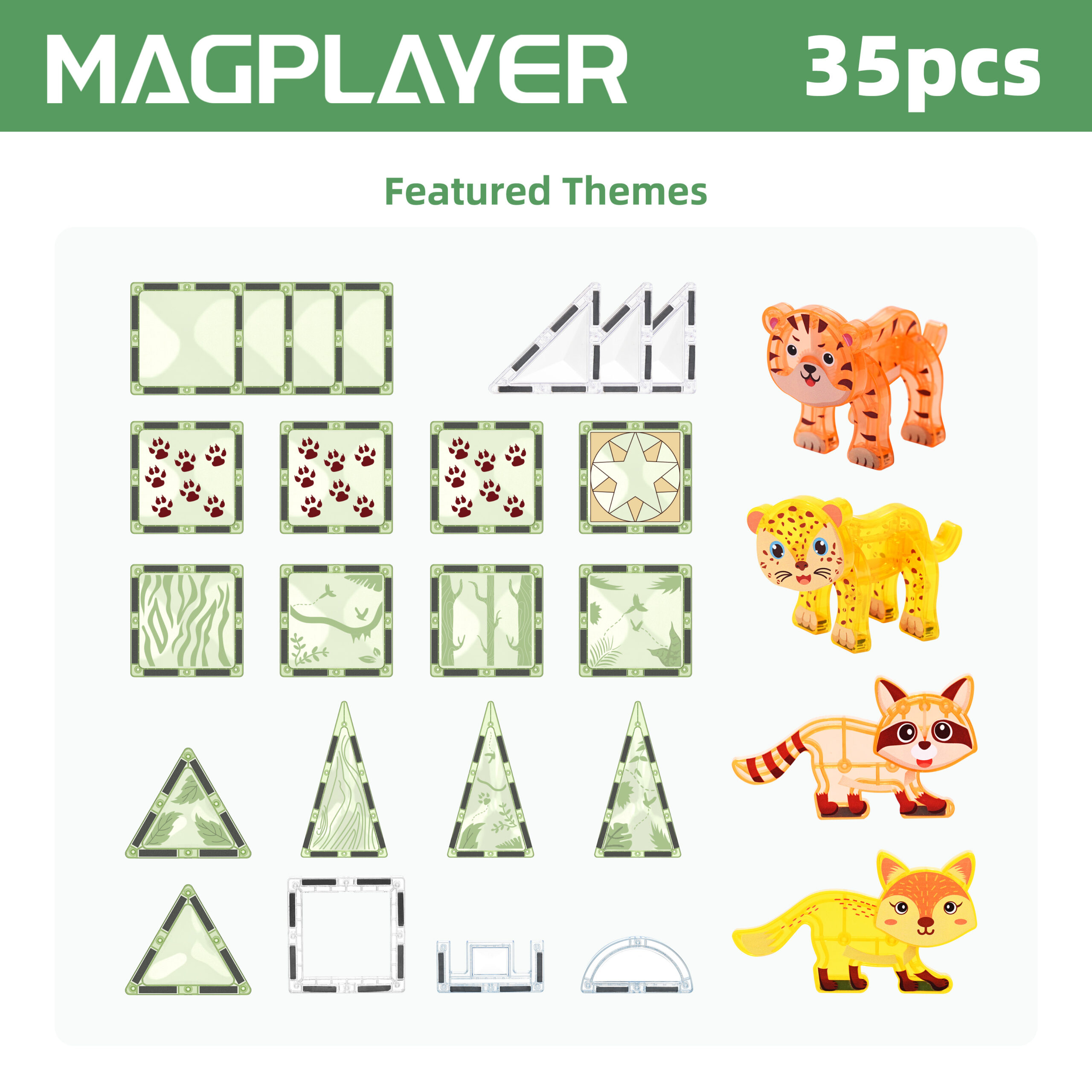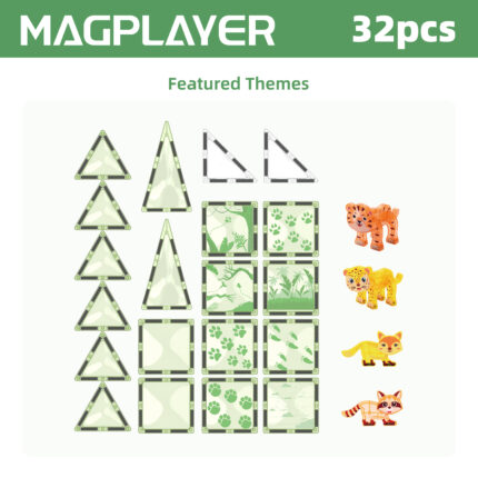 Explore endless creative possibilities with the Magplayer 35-piece Featured Themes Tiles set! This complete set includes printed magnets of various shapes, as well as small animals, with unique magnetic junctions – built more tightly and safely. This set is the perfect expansion to any magnetic puzzle collection, bringing STEAM learning to life through engaging hands-on games.